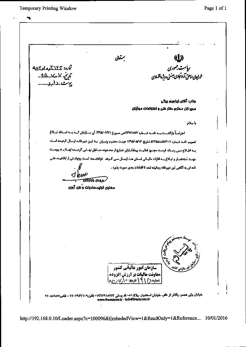 «شرایط شکلی و محتوایی مجوز فعالیت (بهره برداری) در مناطق آزاد تجاری-صنعتی و ویژه اقتصادی به ترتیبی است که حسب مورد توسط سازمان منطقه آزاد تجاری-صنعتی و سازمان مسئول منطقه ویژه اقتصادی تعیین و ابلاغ میشود مبنای استفاده از معافیتهای مالیاتی، زمان شروع فعالیت (بهره برداری) مندرج در مجوز است که از سوی سازمانهای یادشده(حسب مورد) اعلام میشود.» جهت اطلاع و بهره برداری ارسال میگردد.