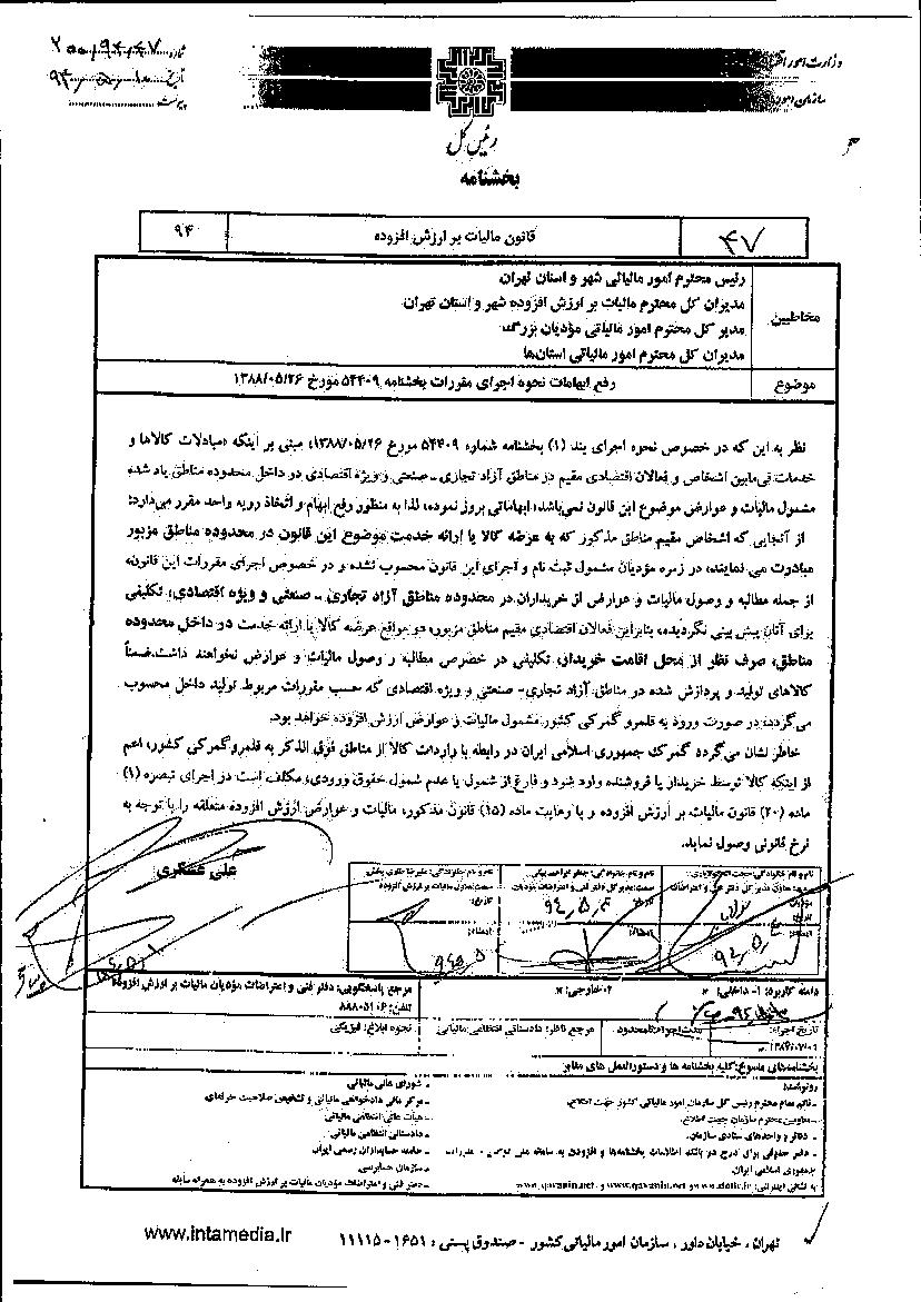 مقتضی است به کلیه واحدهای مالیاتی تابعه آن اداره کل ابلاغ فرمایید که مفاد قانون موصوف را نسبت به عملکرد سالهای مالی بعد از لازم الاجرا شدن این قانون، رعایت نموده و خلاصه اطلاعات مربوط به مؤدیان مالیاتی منتفع از مقررات مزبور شامل منبع مالیاتی، مشخصات مؤدی و میزان مالیاتهای متعلقه قبل و بعد از اعمال مقررات موافقتنامه مذکور را در هر مورد تهیه و به دفتر قراردادها و امور بین الملل معاونت پژوهش، برنامه ریزی و امور بین الملل ارسال نمایند .