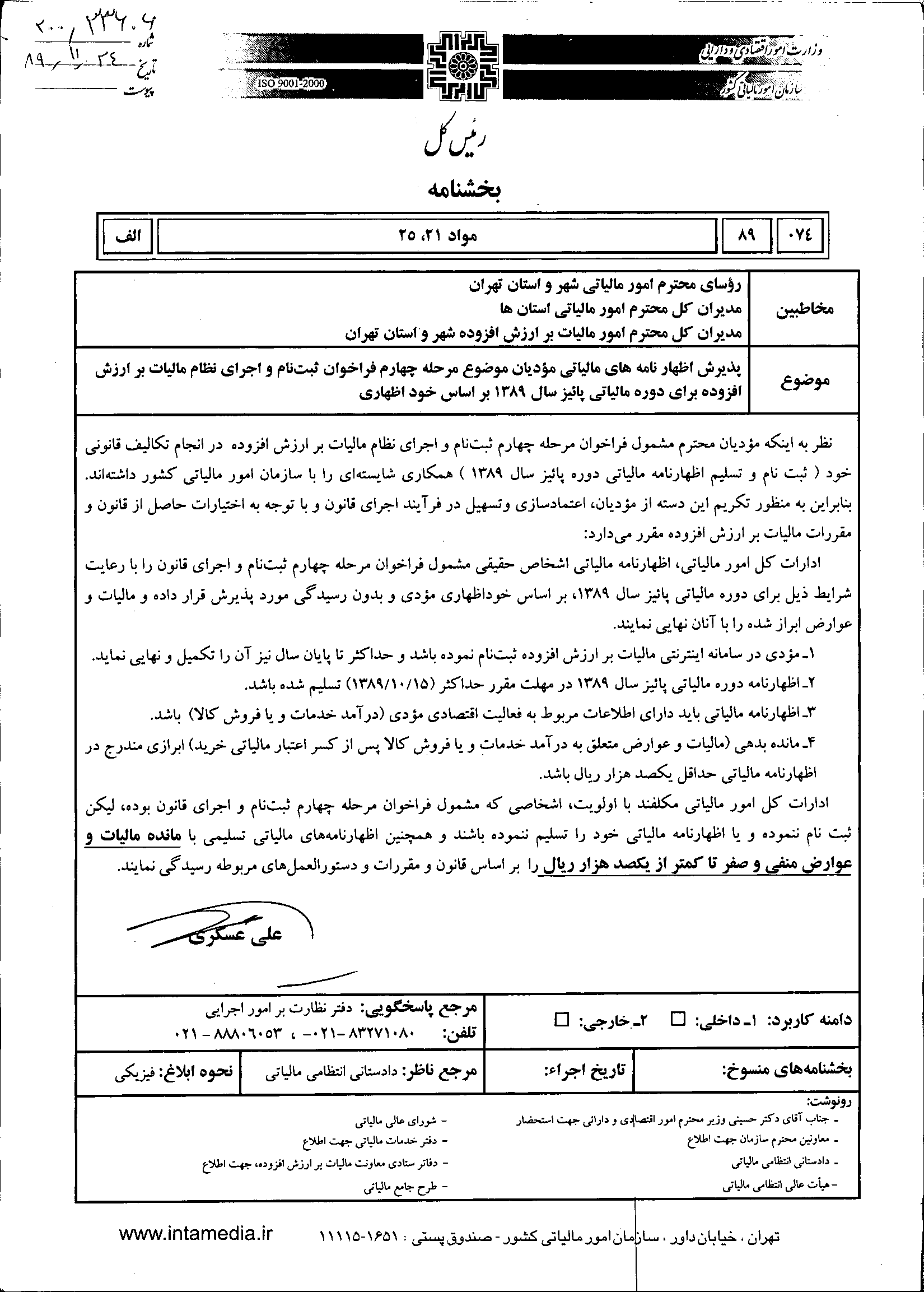 به منظور اجرای صحیح مقررات موضوع